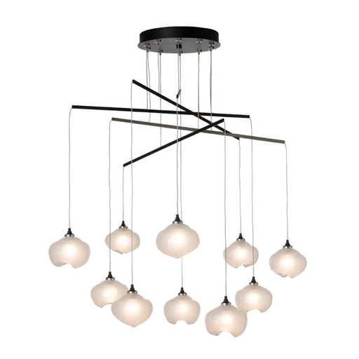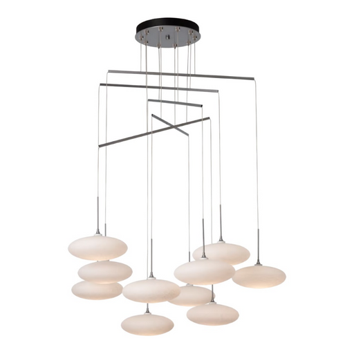 Hubbardton ForgeThe Clouds 9-Light Pendant features a round canopy from which nine unique white tortoiseshell-like glass shades are in staggered suspension. A foca...