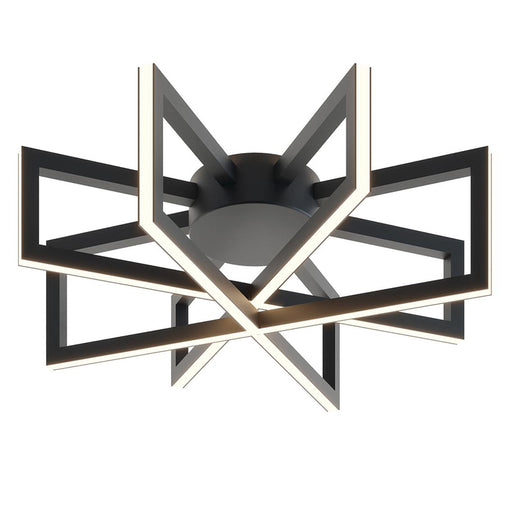 Contemporary LED flush mount with three sided illumination. Features Finish: Satin Nickel, Black, Gold Diffuser: White Acrylic Wattage: 38W Volta...