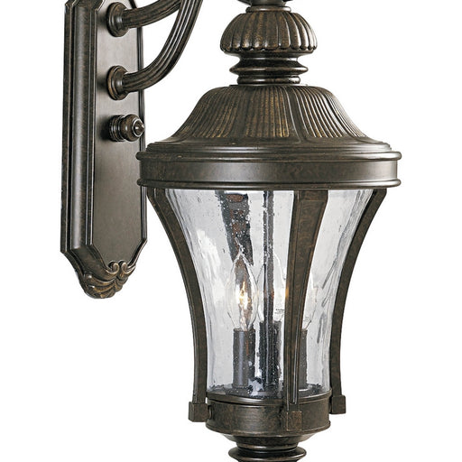 Progress LightingScrolling cast arms, fluted bodies and acorn accents. Features: Finish: Forged Bronze Cast aluminum construction Water seeded glass Mounting hardw...