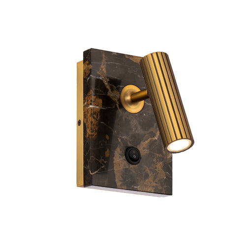 Modern FormsA sculptural accent. Luxurious details of smooth black and gold marble paired with an elegantly ribbed neck create a tasteful task light that gleam...