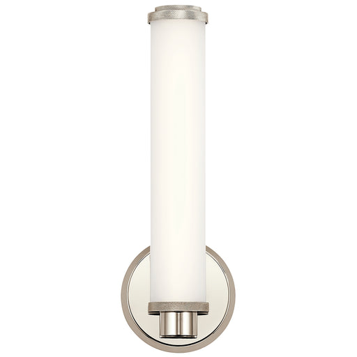 Kuzco LightingSingle lamp vanity with white opal glass cylinder and frosted side covers, metal details. Features Finish: Chrome, Brushed Nickel, Black Shade: Op...