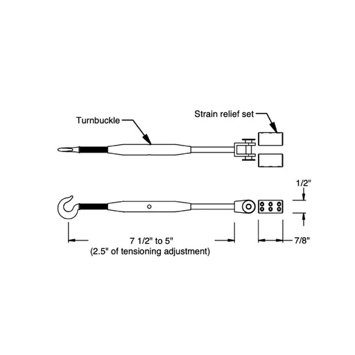 Bruck LightingFeatures Finish: Black skyline, single turnbuckle and strain reliefs set Dimensions Length: 5"-7.5" Height: 0.5" Documents Spec Sheet Instr...