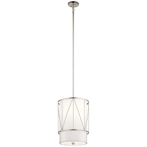 Kichler LightingThe Birkleigh™ 11.5" 4 light pendant with satin etched glass features a simple geometric overlay pattern adds dimension and visual interest with th...