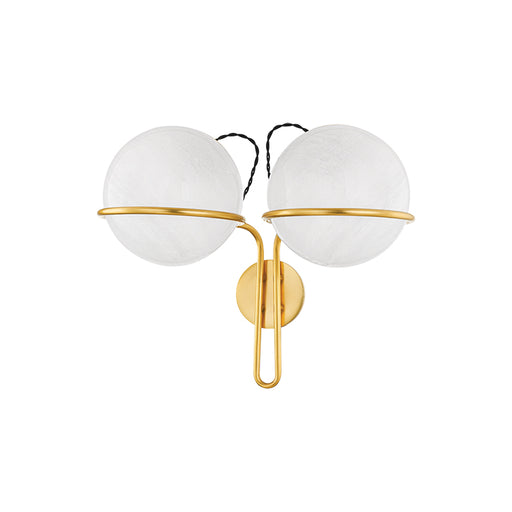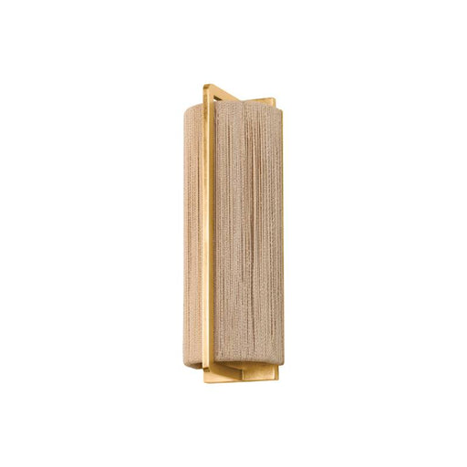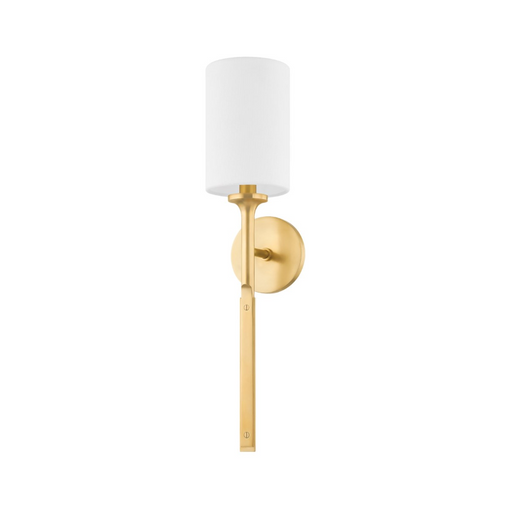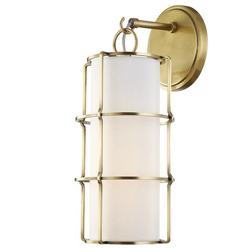 Hudson ValleySimplistic yet unique, the Brampton sconce serves as an elevated lighting staple in a bedroom or along a hallway. The front of the Aged Brass fram...