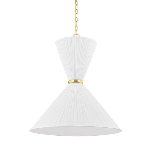 Hudson ValleyA gathered white linen shade is wrapped in a ring of Aged Brass to create Enid's beautiful, tapered hourglass silhouette. The ruffled look and asym...