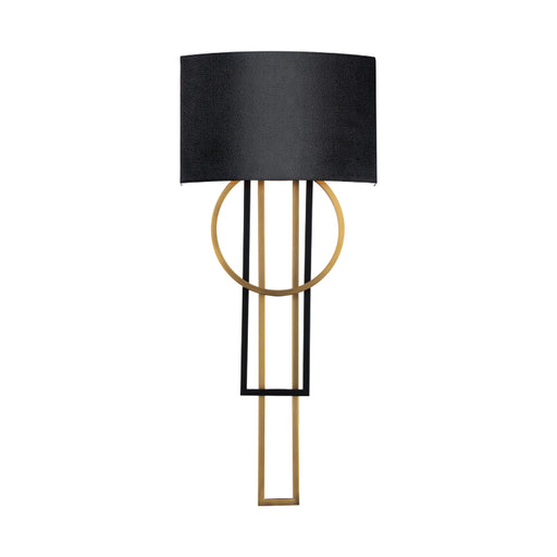 Modern FormsLayered geometry is complemented by rich dark topstitched leather. Illumination reflects down from the stylish mix of the aged brass and black fram...