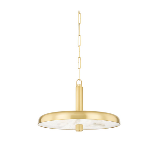 Hudson ValleySleek and sophisticated, this modern take on a dome pendant light features an alabaster lens underneath a smooth, elegant Aged Brass shade. This st...