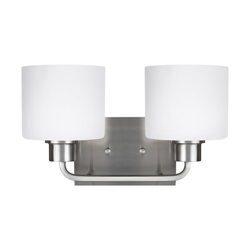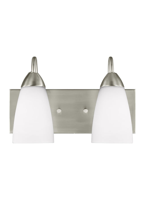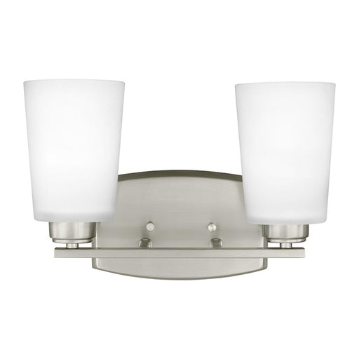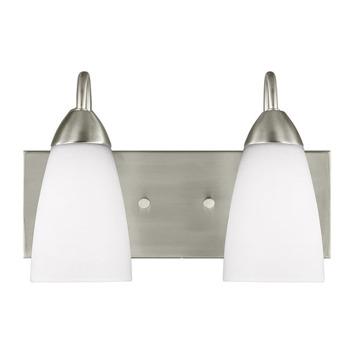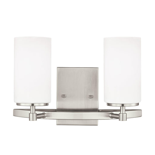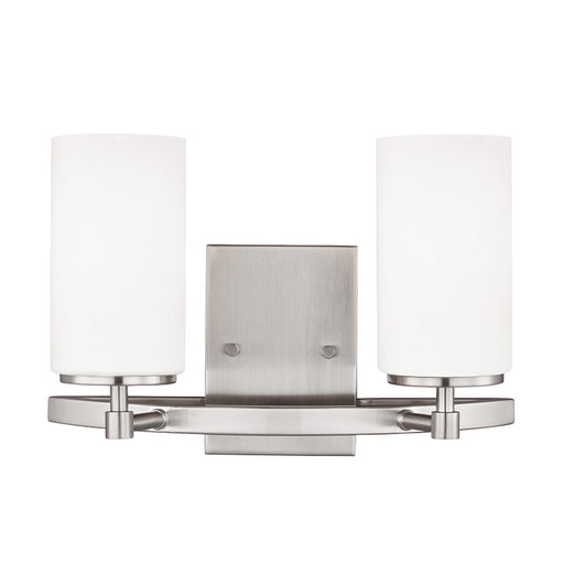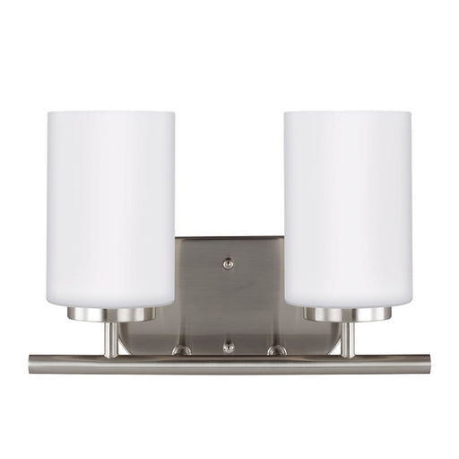 Generation LightingGeneration 41161 Oslo 2-lt 12.5" Wall / Bath Sconce Features Finish: Brushed Nickel, Chrome Material: Steel, Glass Glass: Cased Opal Etched Voltag...