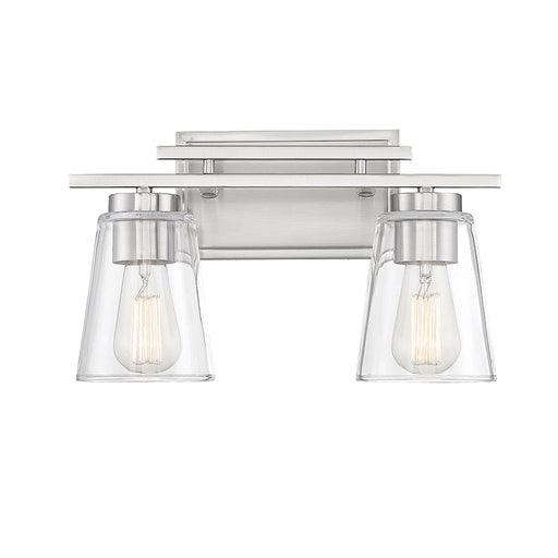 Savoy HouseAdd a hint of midcentury modern style to your bath with the Savoy House Barrow 2-light bath light. Features Finish: Chrome, Warm Brass Shade: Cle...