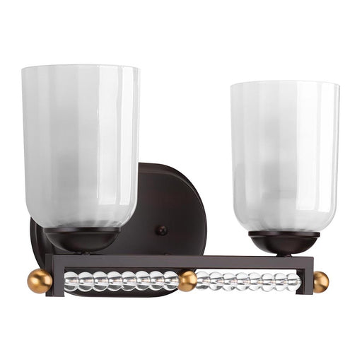 Progress LightingTwo-light bath fixture featuring a chic, sophisticated polished metal frame with layered glass diffusers to cast a glimmering light. An outer shade...