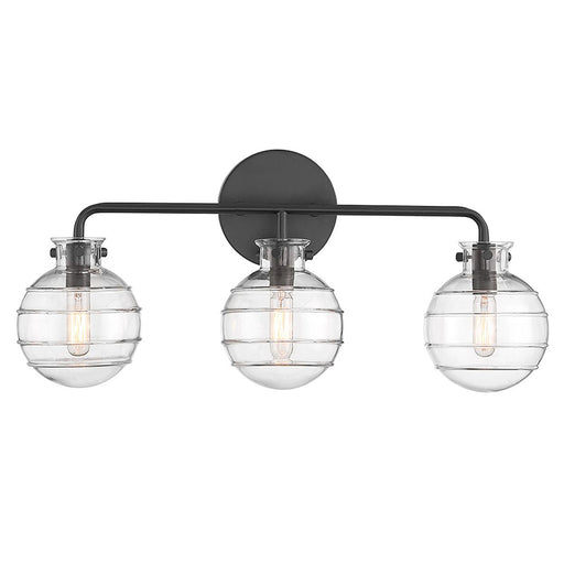 Savoy HouseThe Savoy House Holton 3-light bath light showcases an inventive and geometric style with tall, rounded shades of clear ribbed glass and a slim. Fe...