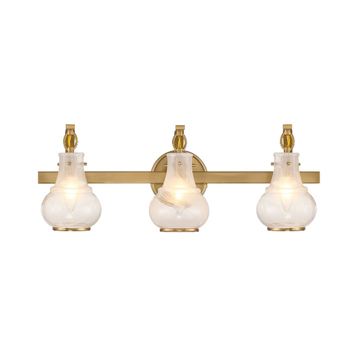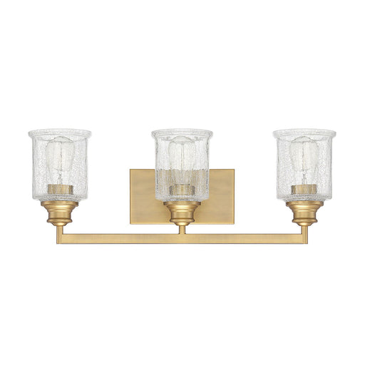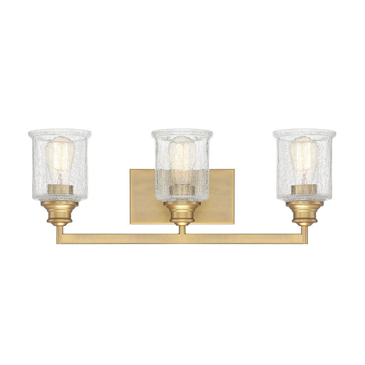 Savoy HouseStunning shades of thick clear crackle glass are the stars of the Savoy House Hampton 3-light bath bar. Features Finish: Warm Brass Material: Meta...