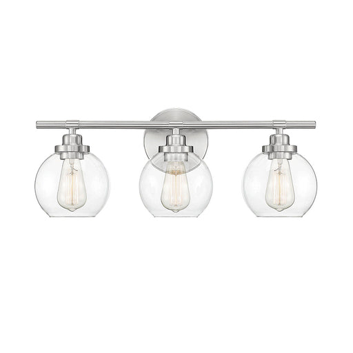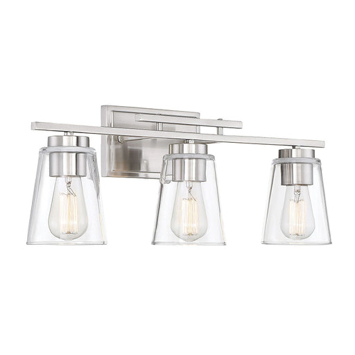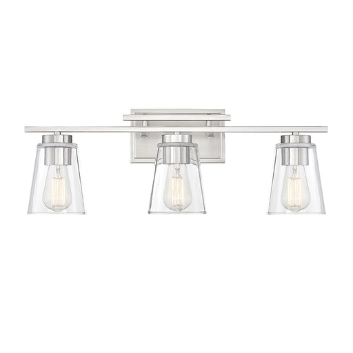 Savoy HouseThis Savoy House Drake 3-light bath bar has an alluringly simple style with a few choice hardware details and shades of clear glass. Features Fin...
