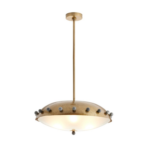 ArteriorsReminiscent of armor or a shield, a dome shade of antique brass-plated iron is hand-hammered for a textural finish. Studded all around the perimete...