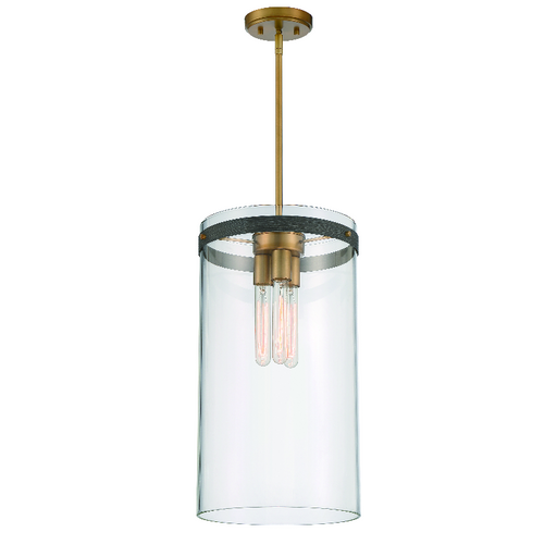 ET2Segments of Clear glass cylinders are separated by distinctly rippled Clear crystal fonts on a thin Natural Aged Brass frame. The translucent segme...