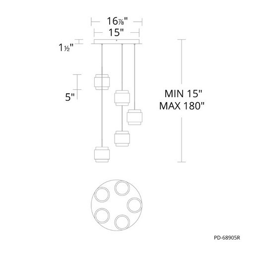 View full detailsdweLED PD-77505R Cyllindra 5-lt 17" LED Multi Light Pendant, CCT Selectable