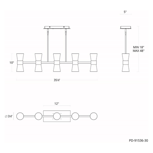 View full detailsdweLED PD-91536 Hourglass 5-lt 36" LED Pendant
