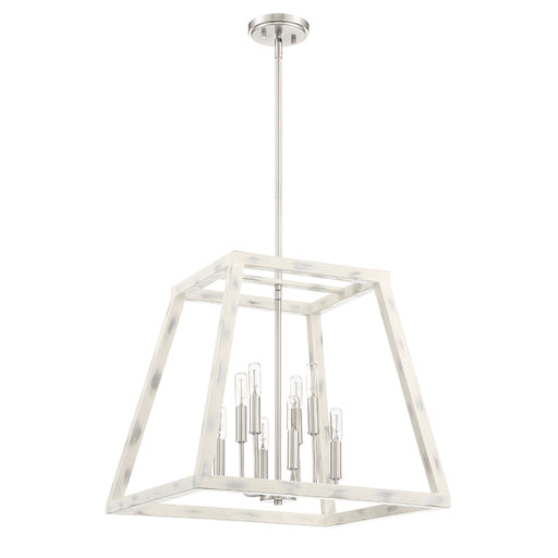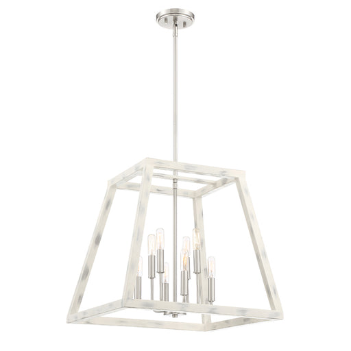 Designers FountainSatin platinum finish silhouetted by a hand painted Coastal Weathered White Wood cage. The Rhode collection offers a modern elegance with timeles...