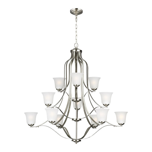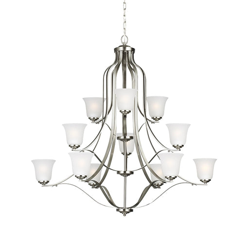 Generation LightingGeneration 3139012EN3 Emmons 12-lt 45” LED Chandelier Features Finish: Brushed Nickel Material: Steel, Satin Etched Glass Wattage: 108W Voltage: 1...