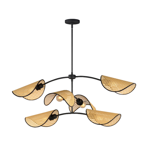 Maxim LightingNatural cane woven wicker shades curve over exposed light bulbs like the brim of a bonnet on a minimalistic mobile chandelier. The composition of s...