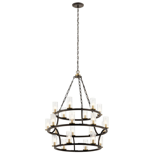 Kichler LightingThe Mathias 41.5" 21 light 3 tier chandelier features a simple rustic style in mixed finishes in Olde Bronze finish and clear ribbed glass. Featur...