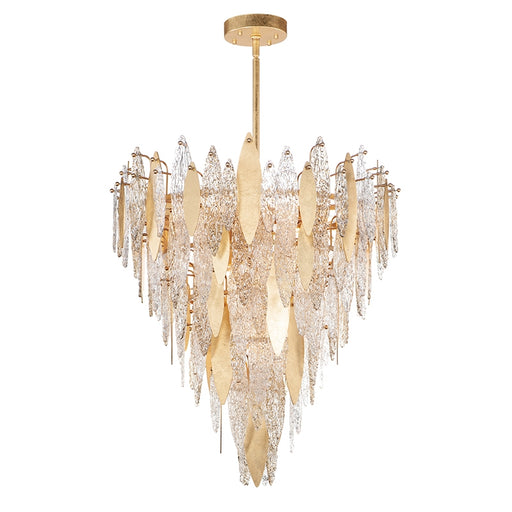 Hand-formed glass petals of Clear and Champagne-tint suspend from a tiered frame of gold and accented with petals of solid metal finished in Gold L...