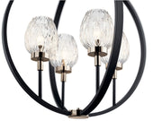 This 4 light pendant from the Moyra collection features black orbs, crystal-inspired goblet shades and rich Polished Nickel details create a striking look that’s both modern and vintage. The faceted glass intensifies and refracts the light.