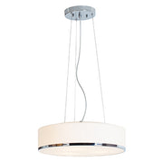 Contemporary 3-light drum shaped pendant fixture with opal glass and chrome finish