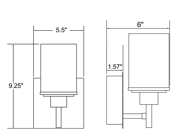 - Canopy: 1.57" L x 5.5” W x 5.5" H