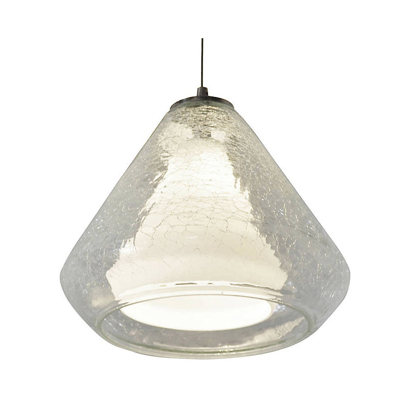 Clear or tinted outer glass pendant is suspended with a 9 foot adjustable cord and monopoint canopy. Canopy mounts to a standard junction box (not included).