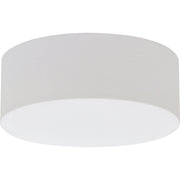 Modern single drum LED ceiling fixture features LumaFuse laminated fabric/acrylic shade that is durable and easy to clean. White bottom acrylic diffuser disperses the light evenly.