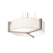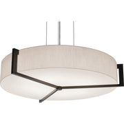 Solid wood accent bars grace this contemporary LED Pendant. Features LumaFuse laminated fabric/acrylic shade that is durable and easy to clean. White bottom acrylic diffuser disperses the light. 3 ft. adjustable ridged stem and aircraft cable.