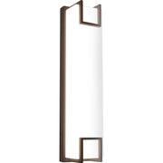 Contemporary LED outdoor sconce with die-cast aluminum housing. Durable powder coat finish. White acrylic diffuser.