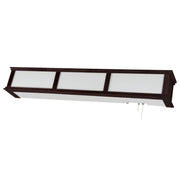 Solid wood trim frame LED overbed with 4-way pull switch. White bottom and clear top acrylic diffuser disperses the light.