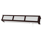 Solid wood trim frame LED overbed with 4-way pull switch. White bottom and clear top acrylic diffuser disperses the light.
