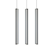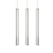 Contemporary 3 light LED linear pendant with four sided illumination.