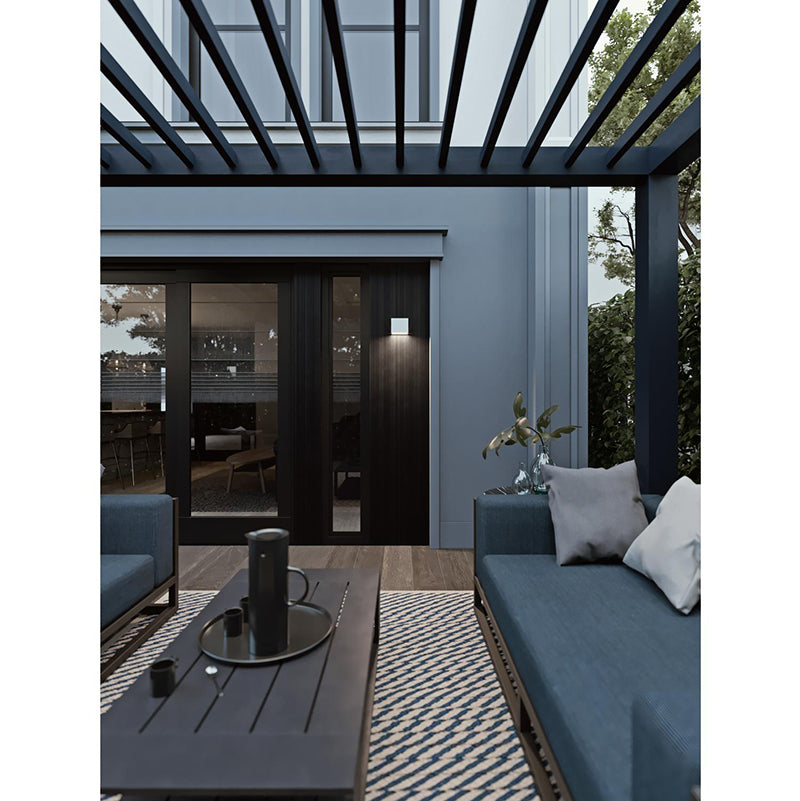 Simplistic design. Indirect light with wall wash effect. Ideal use in entrances or anywhere general outdoor lighting is needed. Provides lighting in residential, commercial and hospitality applications.