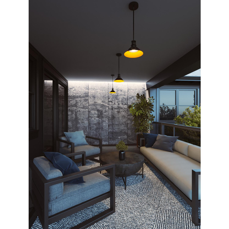 Indoor/Outdoor rated LED pendant with weather resistant two-tone metal finish.