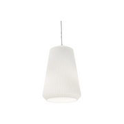 Contemporary LED pendant with soft hand-blown ribbed glass diffuser.