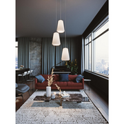Contemporary LED pendant with soft hand-blown ribbed glass diffuser.