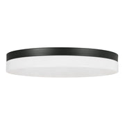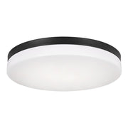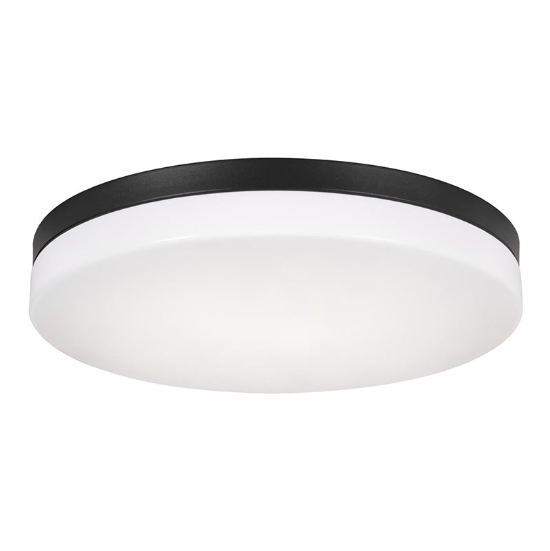 The Oscar features a ceiling hugging low-profile design with decorative metal trim band and white Acrylic diffuser.