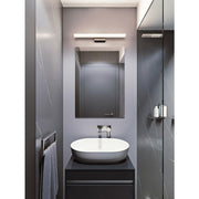 Slim profile modern vanity with a thick acrylic diffuser. Ideal use for general lighting in indoor residential, commercial, and hospitality applications.