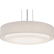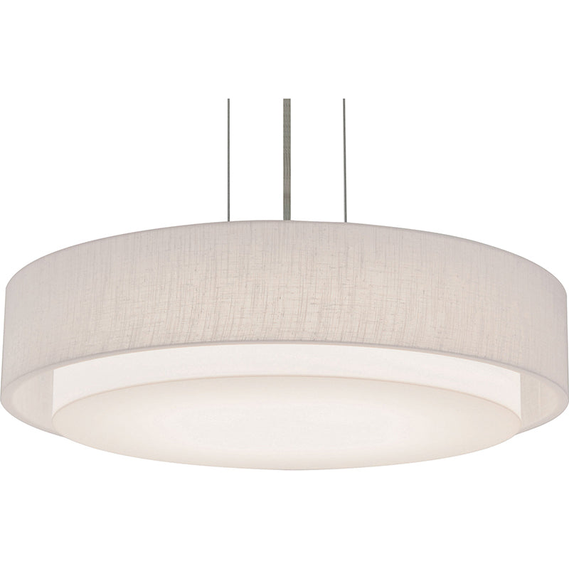 Modern drum LED pendant features an outer LumaFuse™ laminated fabric/acrylic shade that is durable and easy to clean. Inner white acrylic diffuser disperses the light evenly.