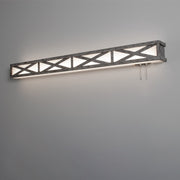 Metal linear frame with cross accents. LED overbed with 4-way pull switch. White acrylic diffuser disperses the light.