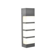 Contemporary LED outdoor sconce with die-cast aluminum housing.