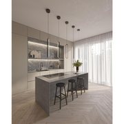Contemporary design LED pendant with perimeter illumination.