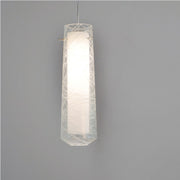 Hand-blown glass with white pattern molten glass cane. Pendant is suspended with an 9 foot adjustable cord.