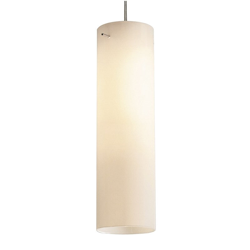 Frosted glass cylinder pendant is suspended with an 9 ft. adjustable cord can be ordered individual or with a multi-point canopy. Fixture mounts to a standard junction box (not included).