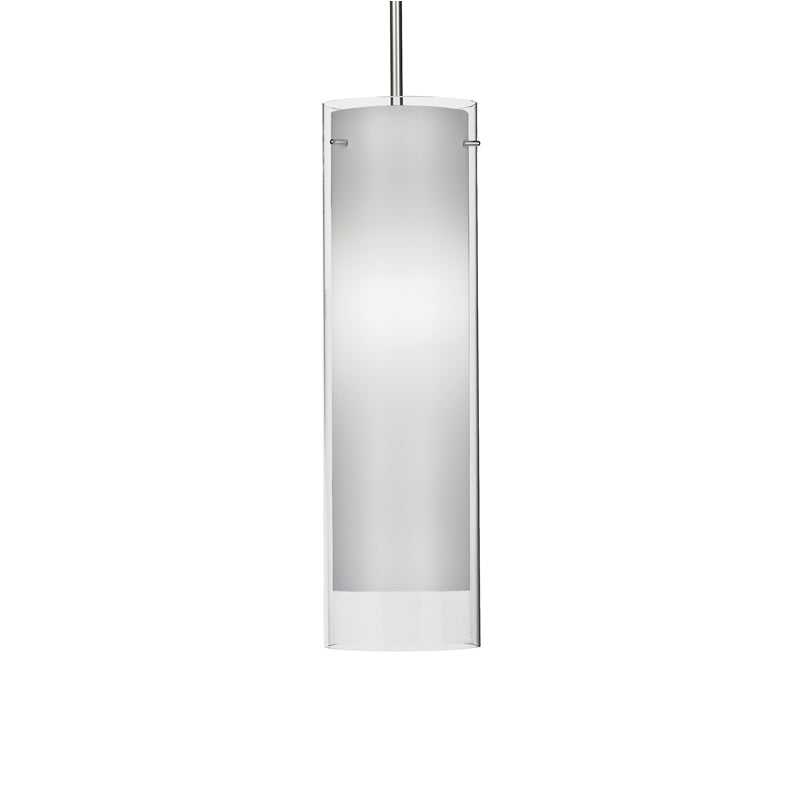 Frosted glass cylinder inside a clear glass cylinder suspended with a 9 ft. cord. Mounts to a standard junction box (not included).