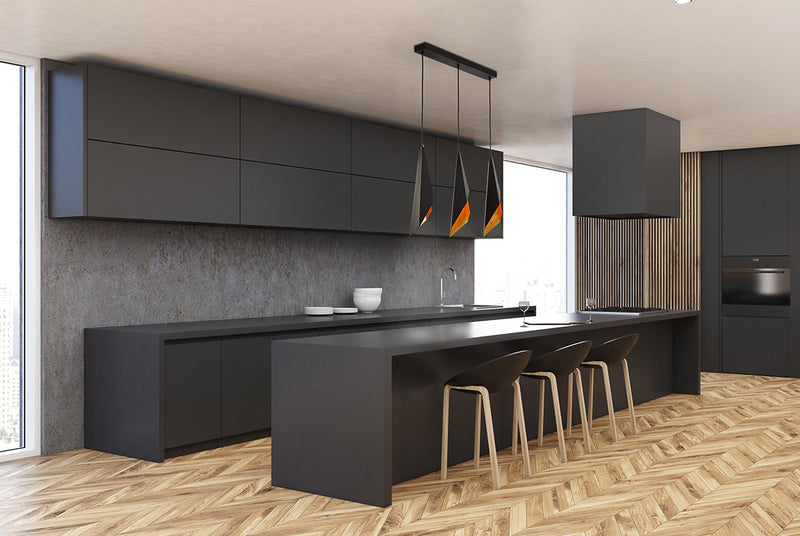 Velo’s sculptural lines are inspired by draped fabric, giving it dramatic shape and presence. Finished in Matte Black that reveals luxurious Gold Foil interiors, its warm, sultry glow will lend an inviting hue in your space.